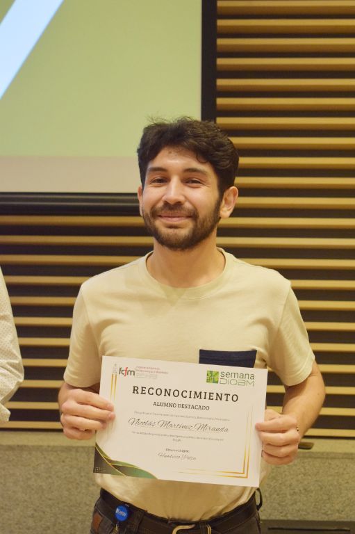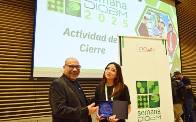 Las premiaciones realizadas en el marco de la Semana del DIQBM reunieron a la comunidad en un espacio de reconocimiento y celebración. La jornada destacó a docentes y profesoras y profesores auxiliares por su dedicación, a funcionarias y funcionarios por su apoyo permanente, y a estudiantes que sobresalieron por su excelencia académica. También se reconoció a los y las deportistas del departamento y a las ganadoras del concurso fotográfico. Un reconocimiento especial fue otorgado a Francisca Ramírez, estudiante del DIQBM, por su liderazgo y compromiso en la organización de la semana, que permitió consolidar una actividad participativa y representativa de toda la comunidad.