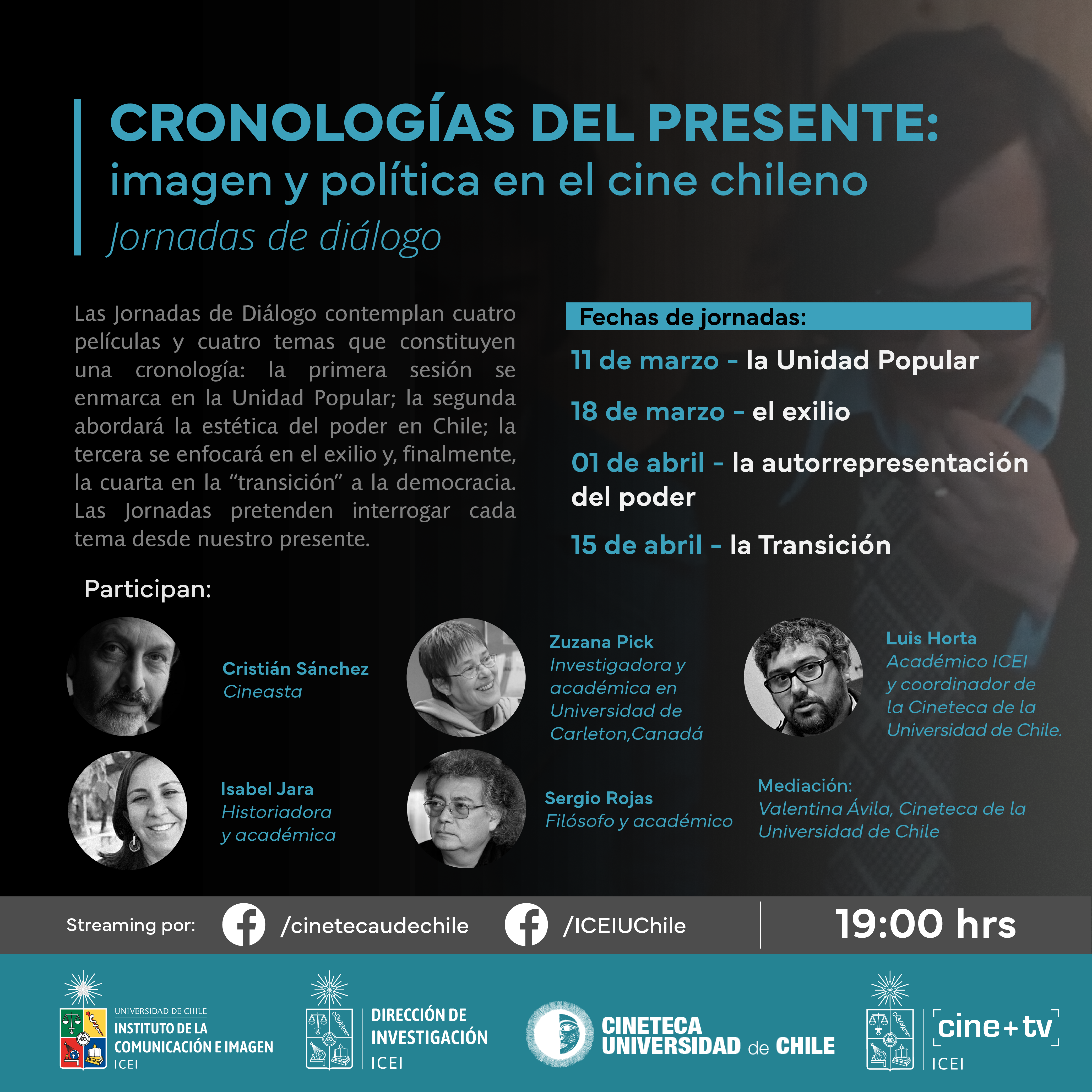 El ciclo de jornadas de diálogo continuará el próximo jueves 18 de marzo a las 19:00 hrs con la participación de investigadora y académica de la Universidad de Carleton, Zuzana Pick. En esa ocasión, el tema a tratar será "el exilio", a través de la película "Diálogos de exiliados".
