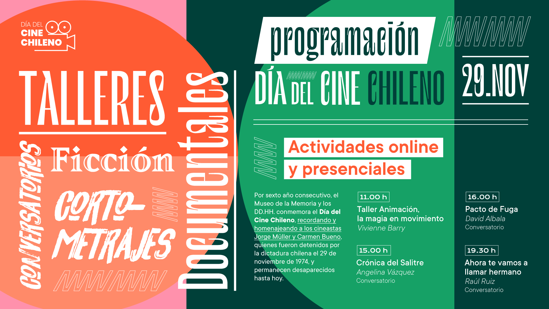Y ya que este aniversario se realizará en el marco de una nueva conmemoración del Día del Cine Chileno, fecha que recuerda el 29 de noviembre de 1974 como el día en que los cineastas Carmen Bueno y Jorge Müller fueron detenidos ilegalmente y desaparecidos por agentes de la DINA; la Cineteca de la U. de Chile desarrollará y participará de cuatro actividades en el recuerdo de su memoria: