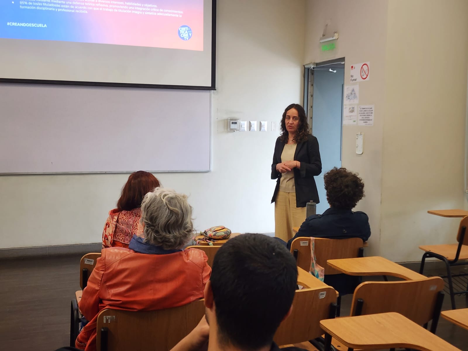 La actividad fue encabezada por la directora de la Escuela, la profesora Pachi Bustos, y por la subdirectora, la profesora Daniela Jordán, quienes, en su rol de expositoras, presentaron las conclusiones del texto elaborado por una comisión especializada. Si bien la certificación de la carrera no es de carácter obligatorio a nivel gubernamental, este es un proceso al que la Escuela se adhiere voluntariamente con el propósito de implementar un plan de mejoras que garantice la calidad y el prestigio de la carrera.